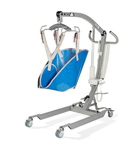 Alquiler Mensual grúa de transferencia Eléctrica para el manejo y traslado de pacientes. Adecuada para pacientes de hasta 150 kg. Estas grúas están diseñadas para ser usadas en casa. Ofrecen seguridad, funcionalidad, manejo y fiabilidad de traslado.
