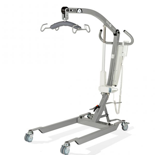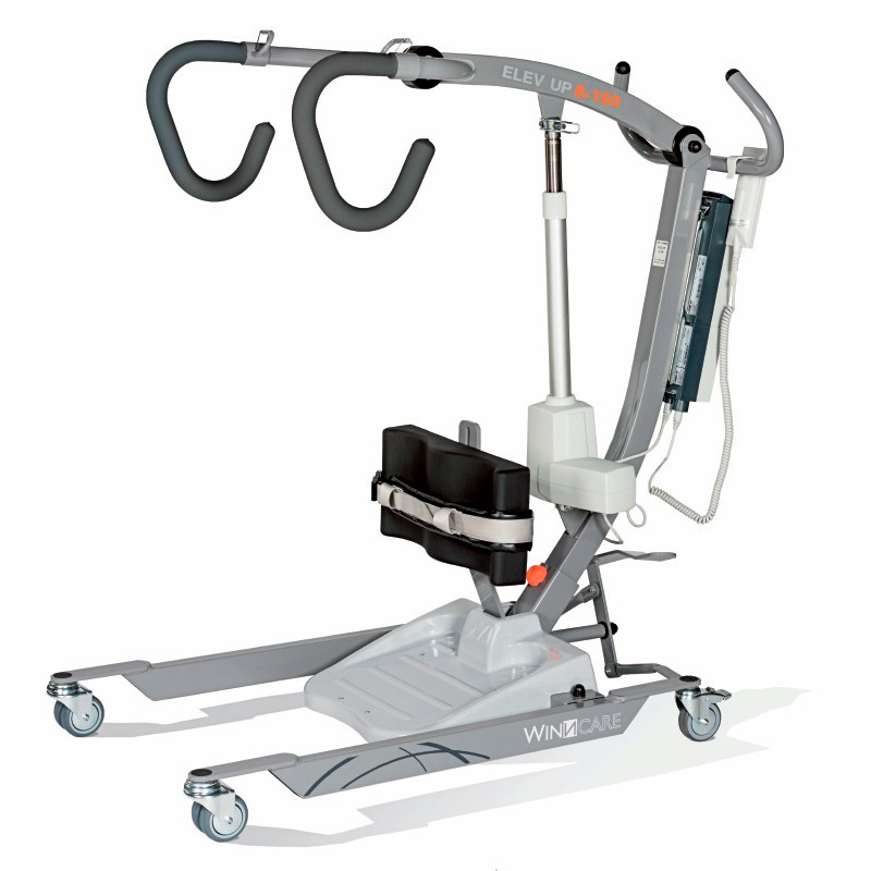 - Grúas bipedestación elev up 150 wincare virmedi: Estas grúas se suministran con el arnés, tienen un ancho de 57 cm, patas abiertas ancho total de 81 cm y longitud de 102 cm, peso de la grúa 37,5 kg, alto total 97 cm.