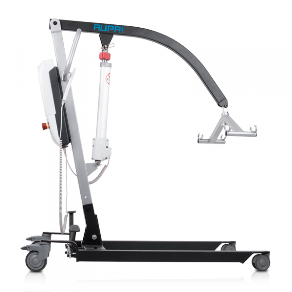 - Grúa de aupa total care tienen un ancho de 50 cm y longitud de 87 cm, apertura total de las patas de 40 cm a 78 cm con una profundidad total de 104 cm, alto total 129 cm a 185,5 cm altura del arnes al suelo 60 cm a 167 cm , peso total 39,90 kg peso soportado 150 kg.