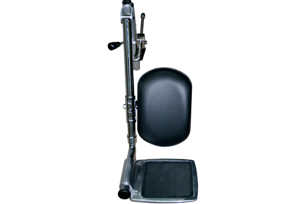 Alquiler Reposapiés elevable y regulable en altura en acero. Lleva una almohadilla para descansar la zona del gemelo. Ideal para personas que han de llevar su pierna de una manera elevada.