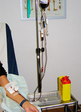Autohemoterapia mayor : Se extraen 100 cc. de sangre, se ozoniza y se vuelve a inyectar por vía venosa.