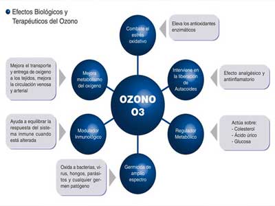 En estas reacciones se generan peróxidos orgánicos, peróxido de hidrógeno (H2O2), ozónidos y aldehídos, los cuales en cantidades adecuadas y controladas ejercen diferentes acciones biológicas que le confieren al ozono un conjunto de propiedades terapéuticas. Está claro que dentro de las terapias complementarias, la ozonoterapia es una de las que mejor explicada está desde el punto de vista bioquímico, fisiológico y farmacológico.