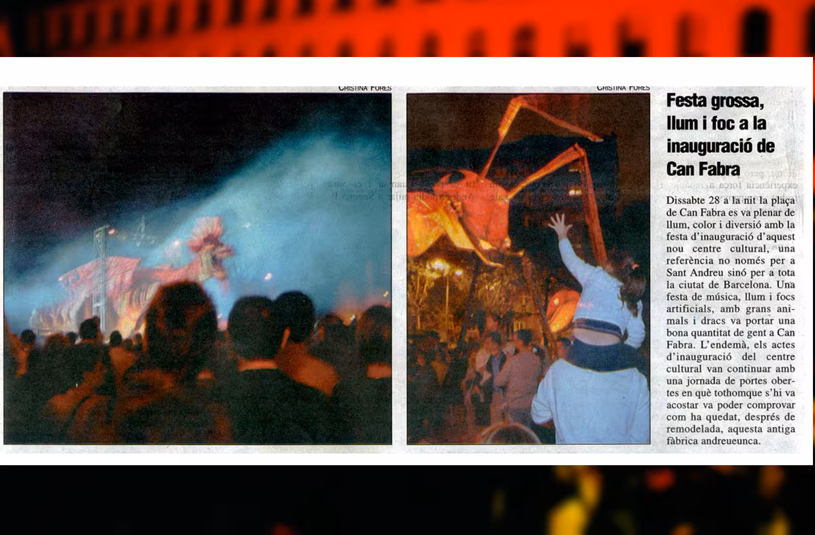El dissabte 28 a la nit, la plaça de Can Fabra es va omplir de llum, color i diversió amb la festa d'inauguració d'aquest nou centre cultural, una referència no només per a Sant Andreu sinó per a tota la ciutat de Barcelona.