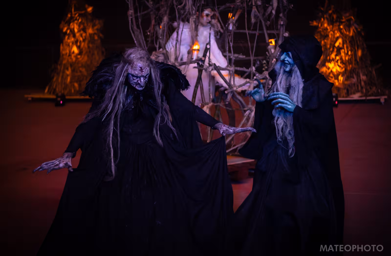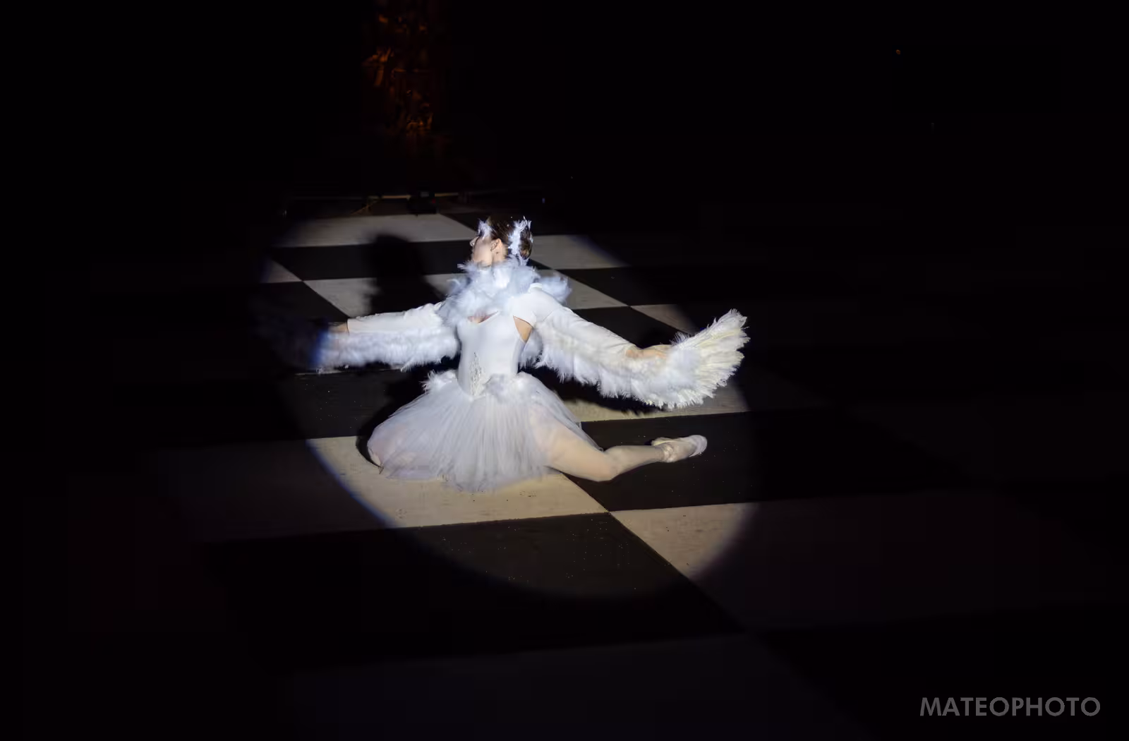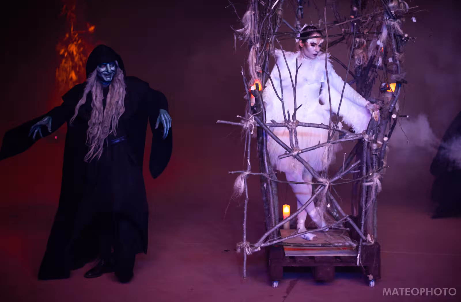 A mesura que la seva dansa es desenvolupa, les seves forces van minvant i la seva ànima, sumida en la més profunda tristesa, es troba més vulnerable que mai fins que sembla defallir. Just aquest instant és el que tant havien esperat les 5 bruixes( Clothos, Laquesis, Atropos, Estena i Eúriale) per a fer-se per fi, amb tan pura criatura.