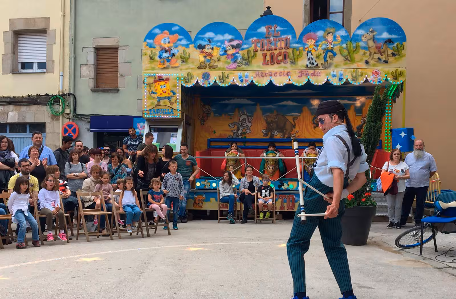 Un personatge Retrociclista, Karoli combina l'enginy amb la presentació de una Arribada de la volta Ciclista comica sobre rodes,fen el mes dicicil sobre rodes i la participacio del public.